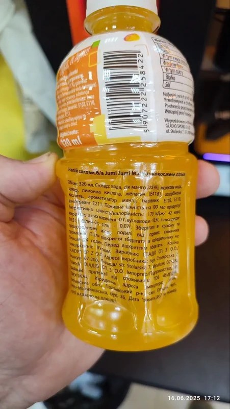 Більш уважно вивчив маркування інших наявних напоїв цього бренду Jumi Jumi (дивіться на фото).