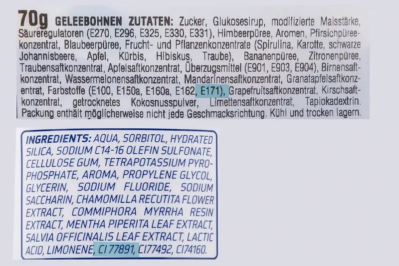 Висновок: Efsa класифікувала діоксид титану в харчових продуктах як «більше не безпечний». Згідно з заявою, не можна виключити, що речовина має генотоксичну дію після споживання з їжею. Це означає, що генетичний матеріал може бути пошкоджений. Експерти не змогли визначити прийнятну або допустиму добову норму споживання діоксиду титану. Хоча через шлунково-кишковий тракт він потрапляє в організм у дуже невеликих кількостях, він також повільно виводиться і може накопичуватися в тканинах.