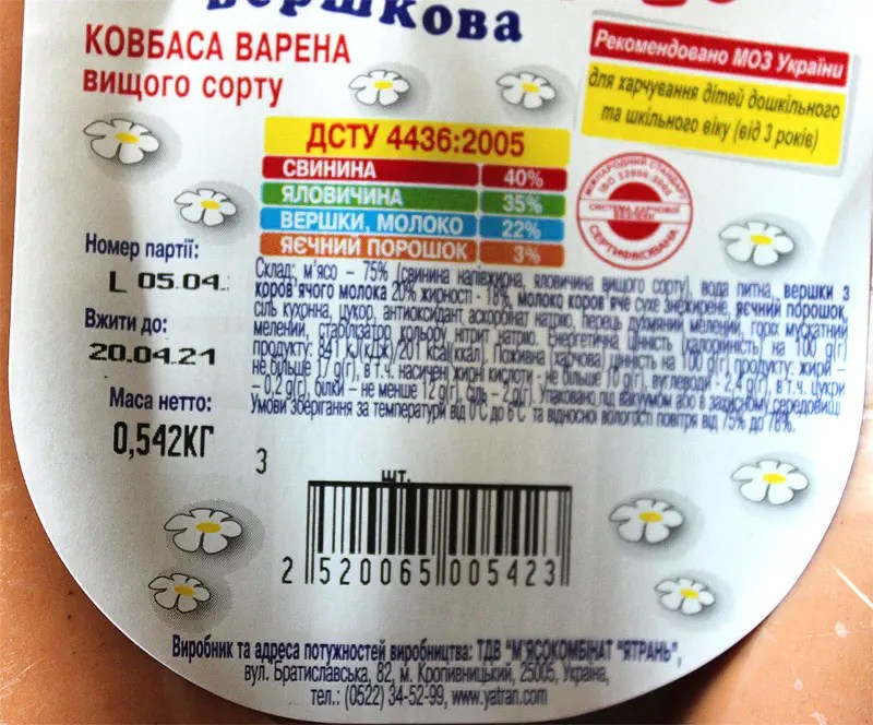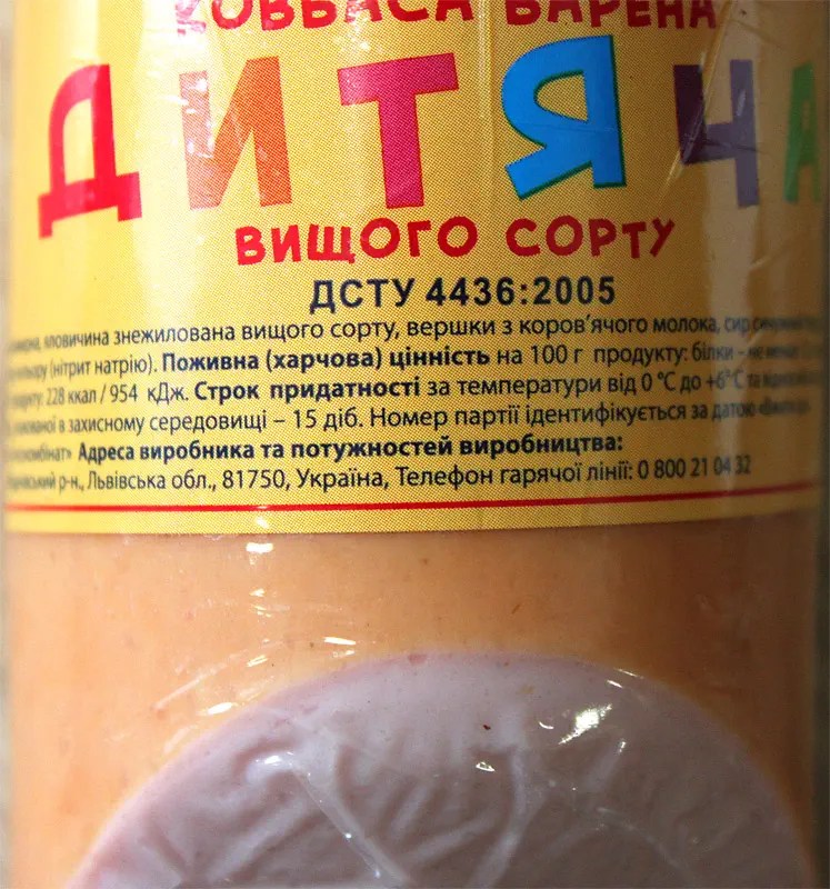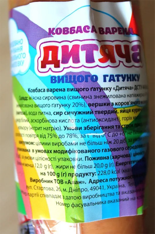 У магазині “Дитячу” ковбасу легко впізнати щодо оформлення. У більшості випадків на етикетках або упаковках ми бачимо яскраві малюнки. Безумовно це добре настроює до себе та вселяє впевненість у якості та безпеці продукції. На жаль, але, як показують дослідження, не всю “Дитячу” ковбаску можна пропонувати дітям.