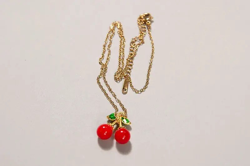 Критичний ланцюжок з вишнею. Підвіска цього ланцюжка від Shein перевищувала граничне значення для токсичного важкого металу кадмію в 8500 разів. © Stiftung Warentest / Ralph Kaiser