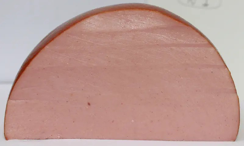 Зовнішній вигляд. Поверхня на зрізі повинна бути еластичною і рівномірною, без крапель вологи, невластивих включень. Колір, відповідний вареній ковбасі, не дуже яскравий. Надмірно рожевий відтінок може свідчити про можливе використання барвників. Якщо це цілий батон, оболонка повинна бути сухою і цілісною, без здуття, заломів і плям.
