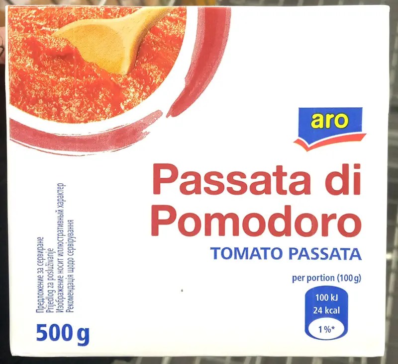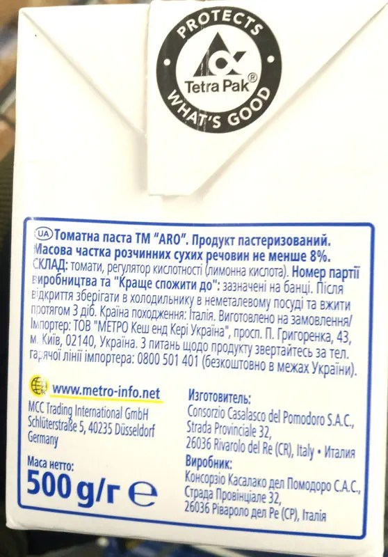 Очень плохо, когда помимо отличий от международных норм, существует еще и проблема простого и явно неправильного перевода, который вводит потребителя в заблуждение и соответственно переводит продукт в фальсификацию на ровном месте. В качестве примера на фото продукт ТМ марки АРО от сети Метро, который содержит лишь 8% сухих веществ, но почему-то гордо назван пастой.