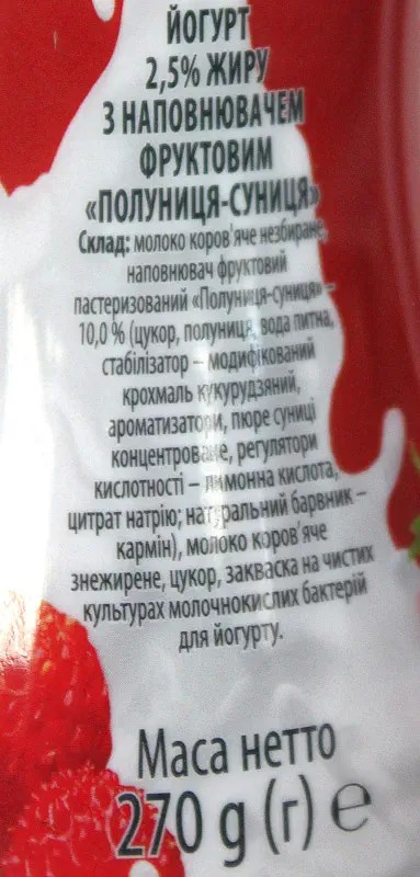 йогурт питний з фруктовим наповнювачем “Полуниця-суниця”