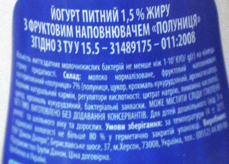 Поскольку фальсификация молочных продуктов растительными жирами – довольно популярное нарушение в Украине, решено было проверить и йогурты. Для начала проверили его количество. Жирность обозначена на всех этикетках, в том числе в разделе пищевая ценности. Также провели идентификацию жира (молочный он или не молочный). Все 8 продуктов были настоящими, молочными, с достаточным количеством молочного жира.