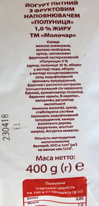 йогурт питний з фруктовим наповнювачем “Полуниця”
